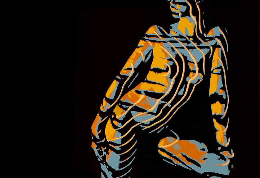 I made an arrangement with Kathleen and Colleen Kenyon who were graduate students. I helped them do the darkroom work to create halftone based photo negatives and they taught me photo-screenprinting. The two images pictured are the original color photography I used and the finished halftone based screenprint I made from it.